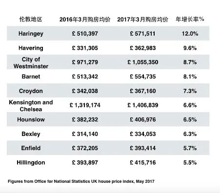 The National Bureau of Statistics of the United Kingdom released a set of authoritative data several years ago: From March 2016 to March 2017, the top ten areas with the fastest rise in house prices in London, Haringey topped the list!